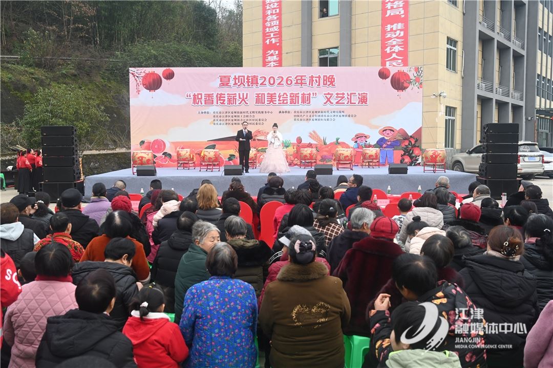31537 次浏览 02-04江津融媒讯(记者 张渝)春节将至,年味渐浓。2月4日,夏坝镇2026年村晚“枳香传薪火 和美绘新村”文艺汇演在夏坝镇政府广场精彩上演,为当地群众送上了一份丰盛的精神年夜饭。回首2025年,夏坝镇干部群