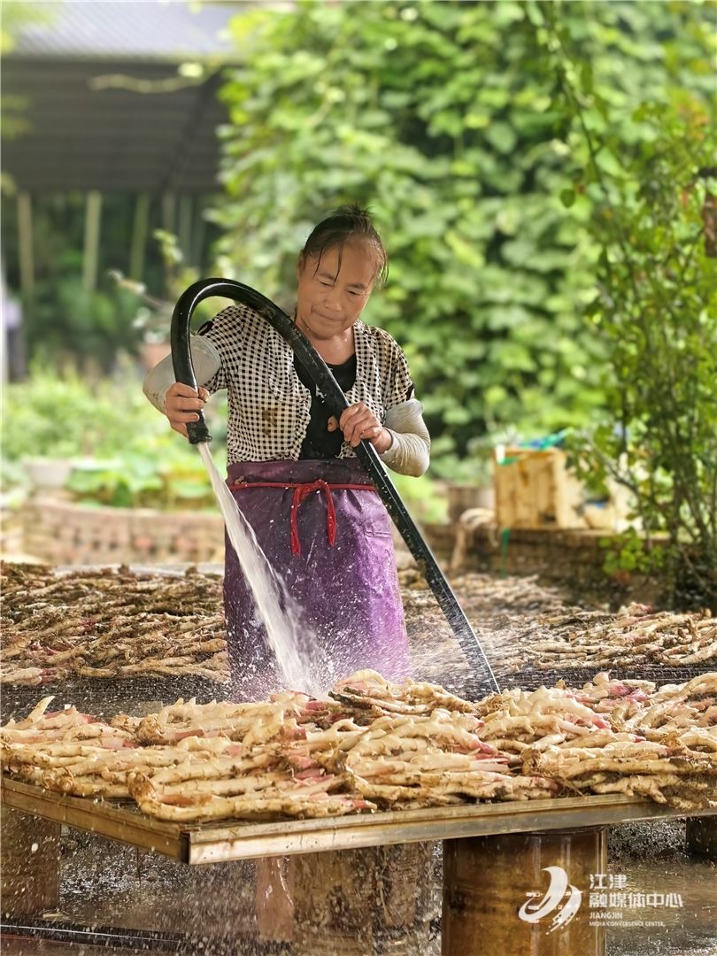 37540 次浏览 09-17江津融媒讯(记者 黄娅秋 实习记者 朱邹)9月17日,江津区德感街道临峰社区,田埂上的笑声比秋日阳光还暖——种植户韩海平蹲在田垄间,双手顺着湿润的泥土往下探,猛地一拔,一整根足有40厘米长、白净得像玉