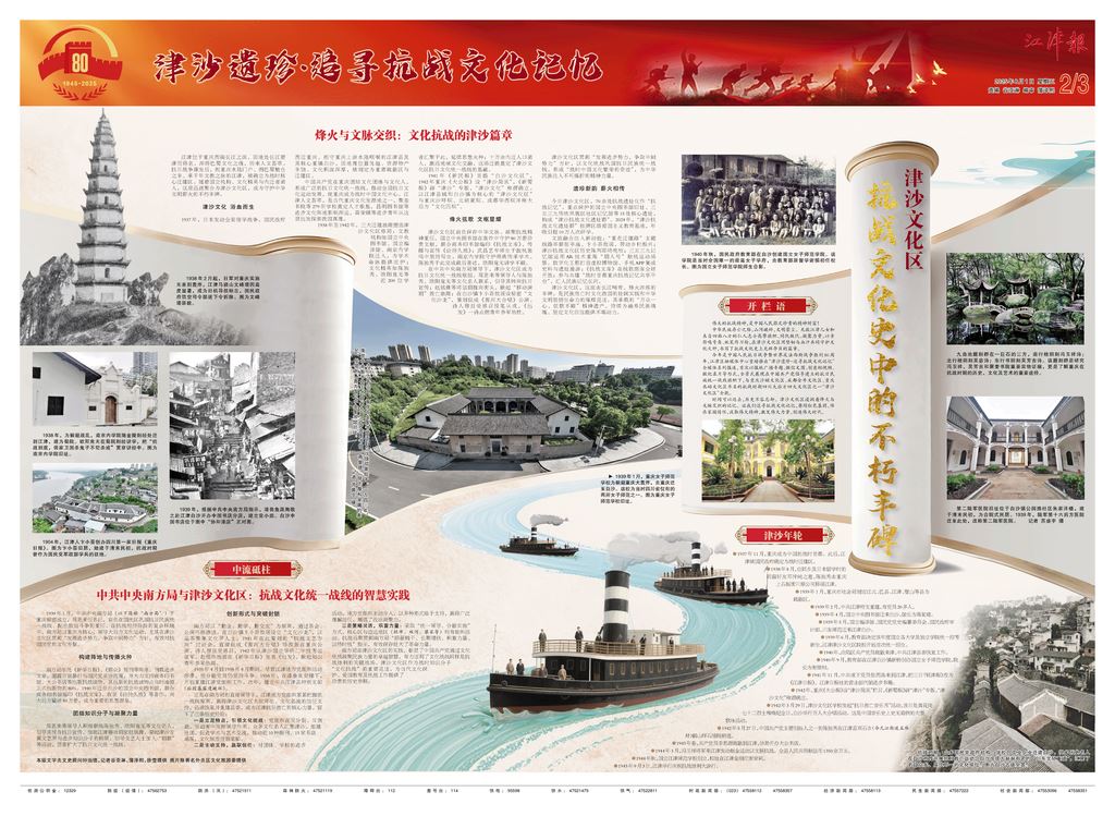 7476 次浏览 08-01开栏语:伟大的抗战精神,是中国人民弥足珍贵的精神财富!中华民族存亡之际,山河破碎,文明蒙尘。无数江津儿女和来自四面八方的仁人志士高擎旗帜、同仇敌忾、凝聚力量,以音符鸣号角、纸笔作刀枪,在津沙文化区用坚