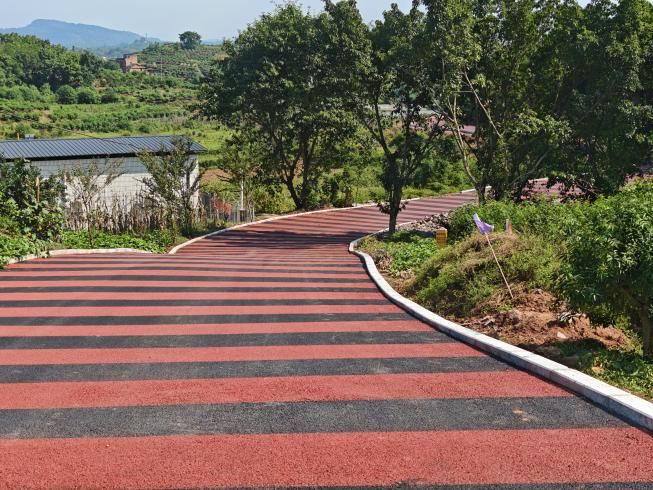 该路段作为村内主干道,因年久失修,原有路面出现多处破损与坑洼,严重影响村民日常出行和车辆通行安全。盘古村坚持以“民心工程”为标准,全力推进“白改黑”提升项目,采用高性能沥青混凝土进行全面翻新铺装,并对排水系统和道路边坡进行一体化优化,彻底解决了以往“雨天泥泞、晴天扬尘”的问题。值得一提的是,本次改造融入了“美丽乡村”建设理念,增设红、黄、蓝三色标线,同步在交叉口、村口等重要节点设置缓冲带与警示标志,在显著提升交通安全的同时,也营造出视觉清新、富有活力的道路景观。